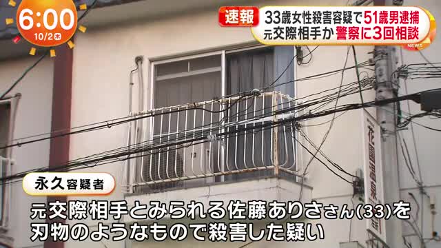 殺人容疑で逮捕された永久寛史容疑者(51)は、店舗兼住宅でバーを経営しており、被害者の佐藤ありささん(33)との間に長期間にわたるDV・ストーカーを含むトラブルがあったことが明らかになっています。https://t.co/WAEGuKENTR