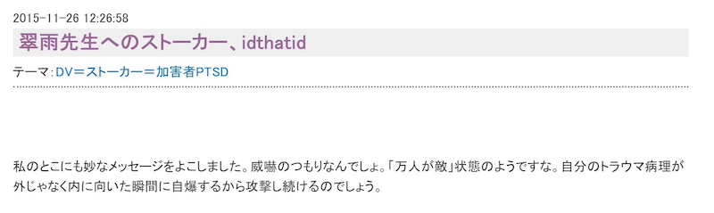 サイバーストーカーidthatidに名指しで奇襲威迫されブログ凍結のくぷ先生